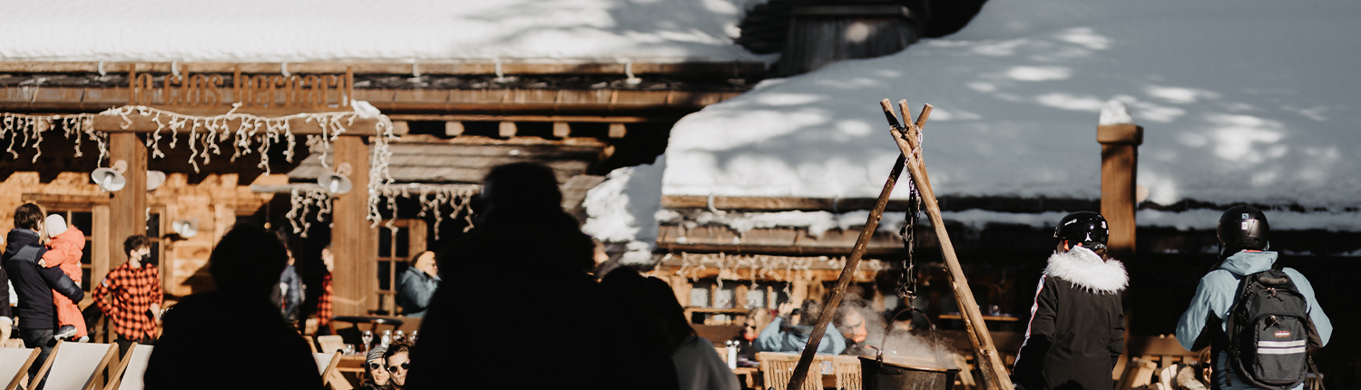 Pénétrer dans notre restaurant, c’est vivre une expérience en pleine nature, entre sapins enneigés l’hiver et clairières verdoyantes l’été. Ici, pas de bruit de station ni de routes, juste le craquement du bois, l’odeur des grillades au feu de bois et la lumière douce filtrant à travers les arbres. Chaque repas devient un moment suspendu, une parenthèse alpine pour se reconnecter à l’essentiel.